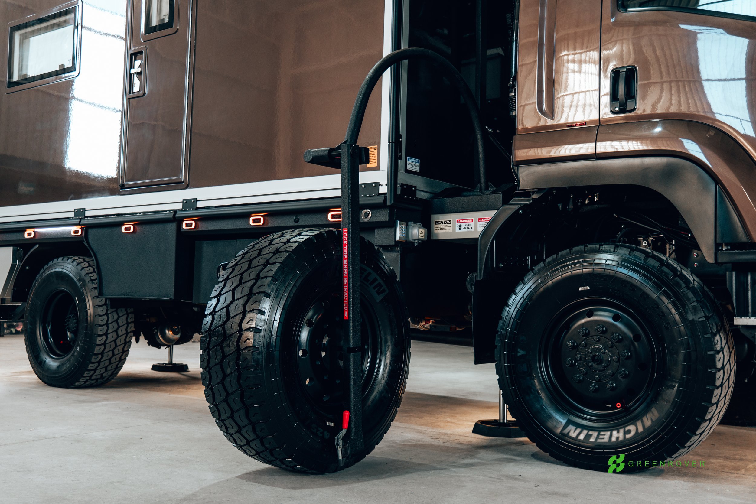 Effortless Spare Tire Management for Large Expedition Rigs. A powered loading and unloading system makes handling massive spare tires safe and easy for solo travelers, ensuring you’re always ready to roll.