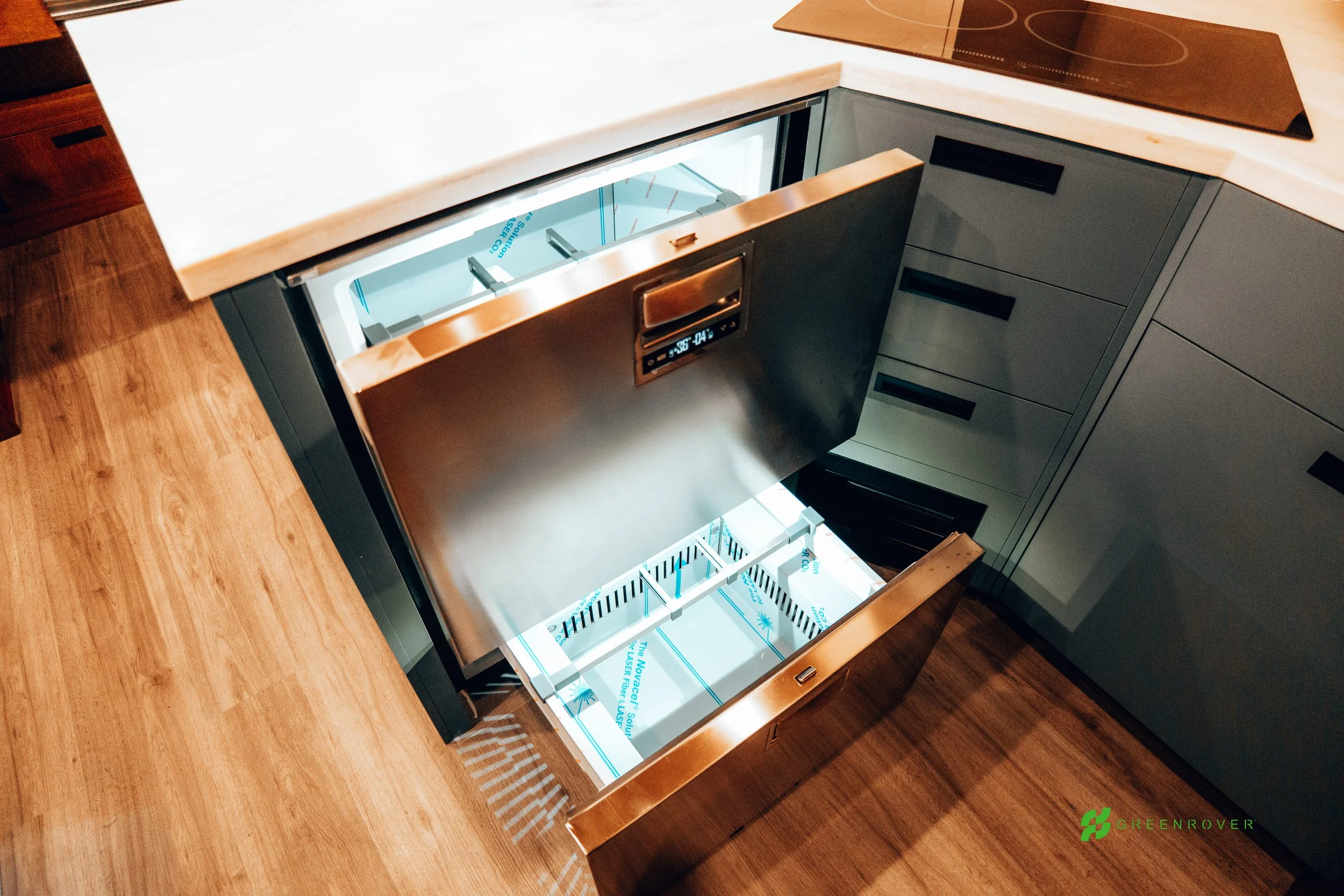 The dual-drawer fridge/freezer system offers 5.1 cu. ft. of storage, giving you the flexibility to configure each drawer independently as fridge, freezer, or both. Uses a low GWP R290 compressor for eco-friendly cooling, with a “Total No Frost” ventilation system that prevents ice build-up and keeps food fresher longer. Soft-close runners, LED lighting, and dual power input (12/24V DC & 100–240V AC) make it efficient and easy to use in any setup.