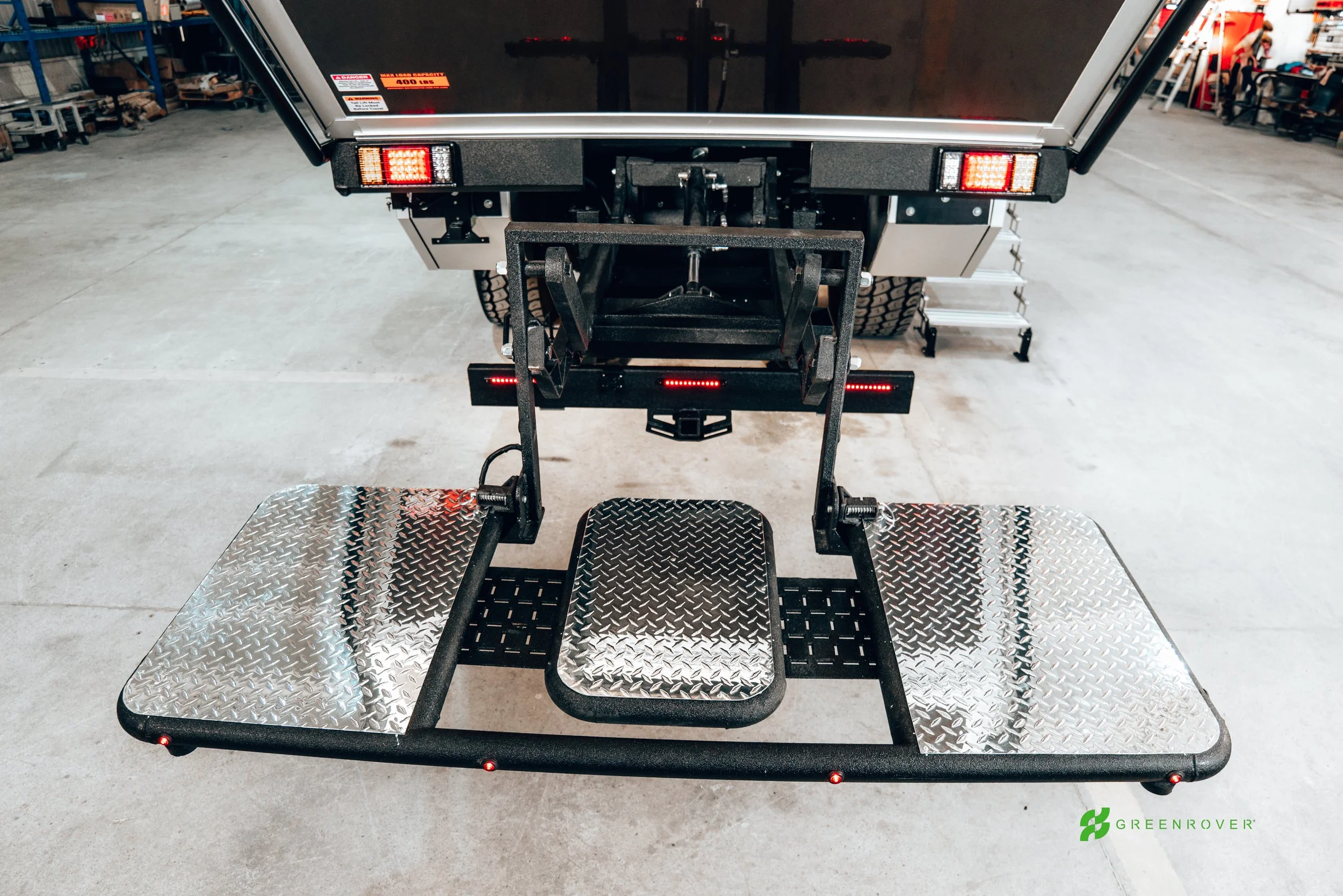 Hydraulic Rear Cargo Platform The integrated, power-assisted rear lift platform makes it effortless to carry large, heavy, or irregularly shaped items — from a full-size adventure motorcycle to e-bikes, kayaks, coolers, grills, propane tanks, firewood, or bulky camping gear.