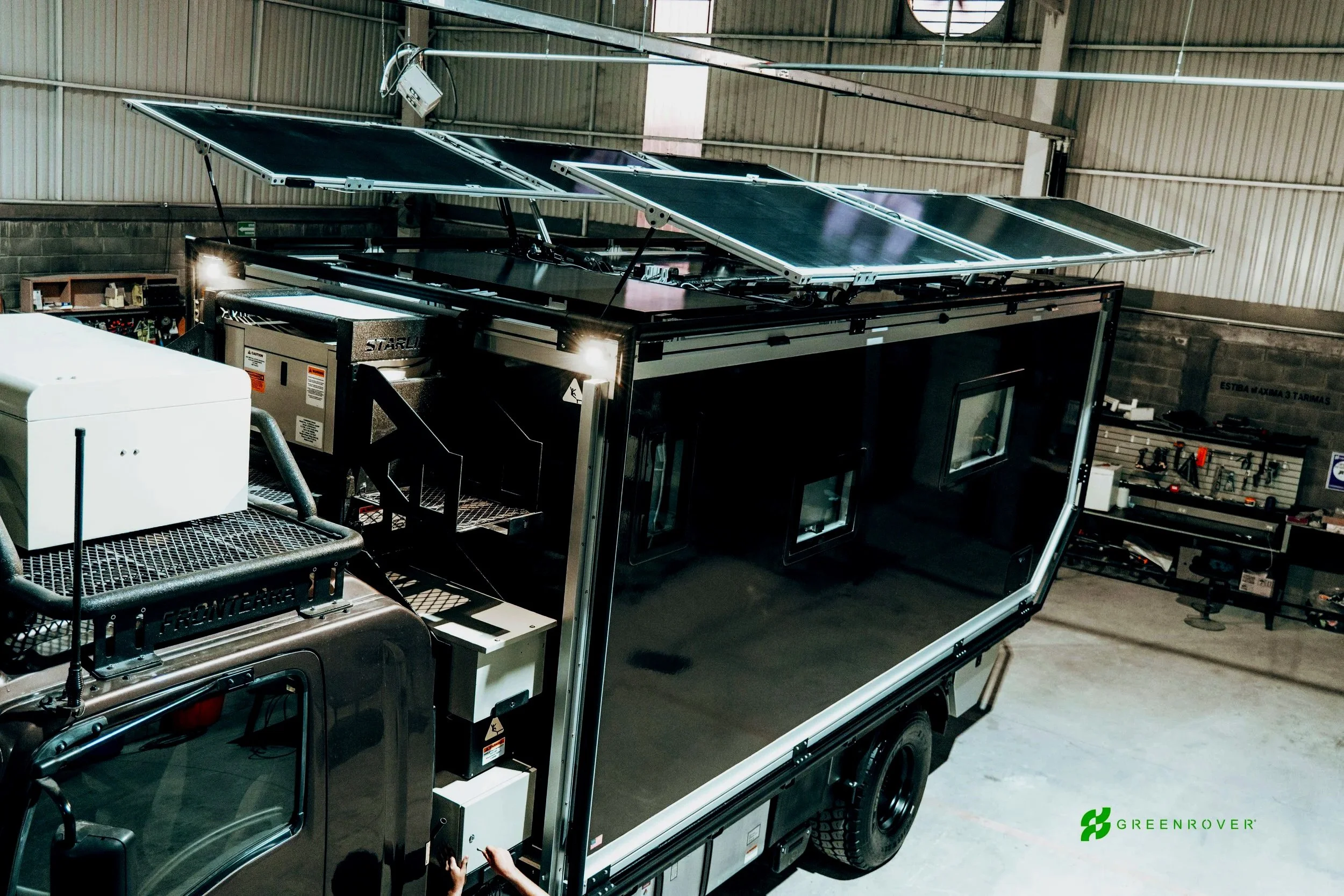 Reimagine how your expedition vehicle captures the sun. SolarWing transforms your GreenRover into a mobile solar powerhouse, delivering maximum off-grid energy without compromise. With full-roof coverage, deployable side panels, and intelligent solar tracking, SolarWing doesn’t just collect sunlight — it hunts it down.